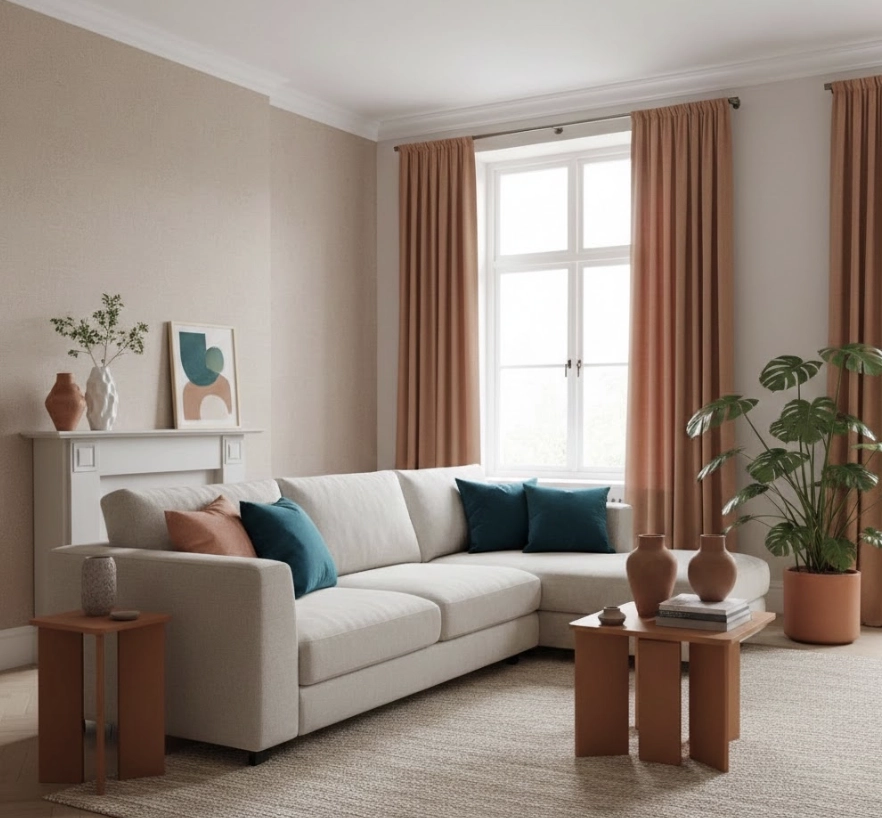 - Le camaïeu (Monochrome) : Déclinez une seule couleur en plusieurs nuances (un salon en dégradés de beige et terracotta). C’est l’assurance d’une ambiance apaisante et chic.